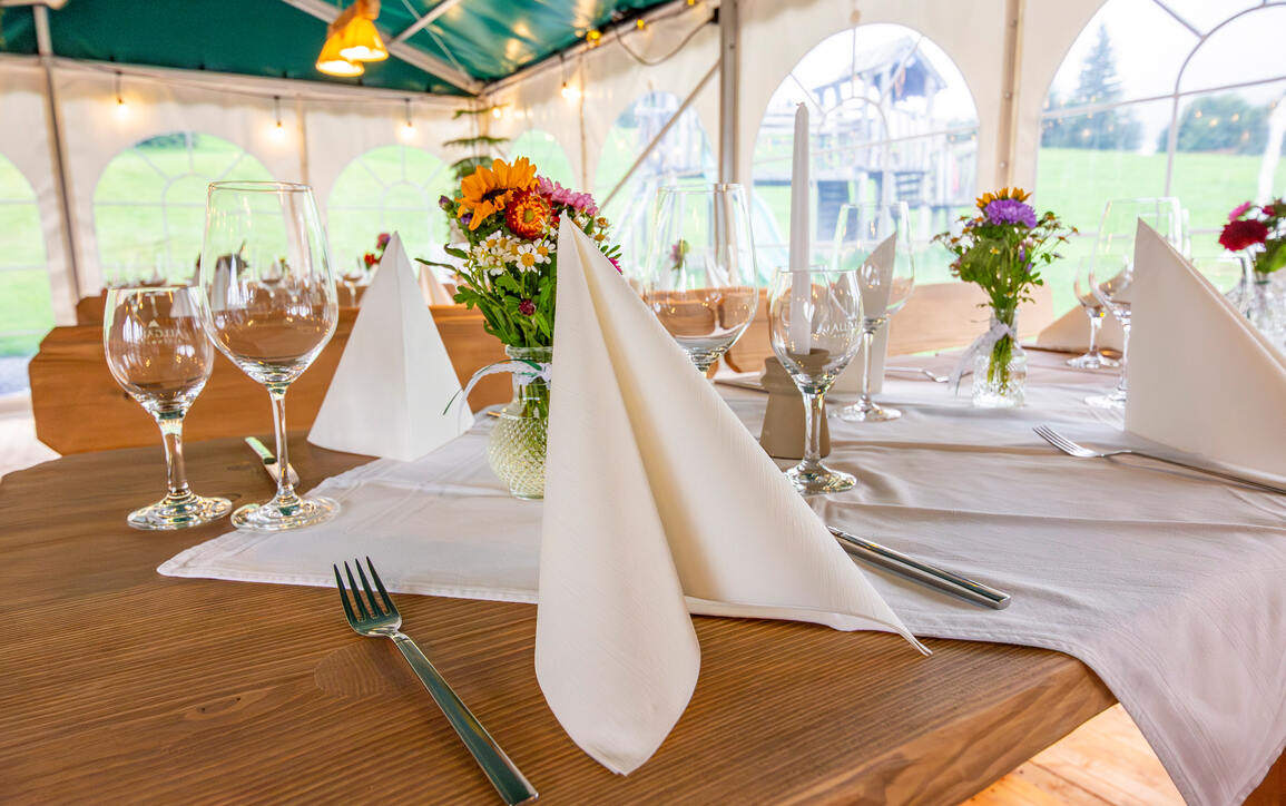 Unser Stadl und das beheizte Eventzelt sind außerhalb der regulären Öffnungszeiten exklusiv für euch reservierbar. Voraussetzungen sind ein Mindestumsatz von 3.000 € – dafür gehört der Abend ganz euch.